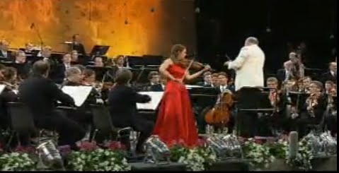 En primer lugar, y en un concierto de Waldbühne y bajo la dirección de Neeme Jarvis, interpreta «Introducción y rondó caprichoso», una de las obras concertantes más populares de Sain-Saens,con evocaciones a la música española, tratadas con virtuosismo y elegancia por el compositor francés. esta pieza fue compuesta para el gran violinista español Pablo de Sarasate.
